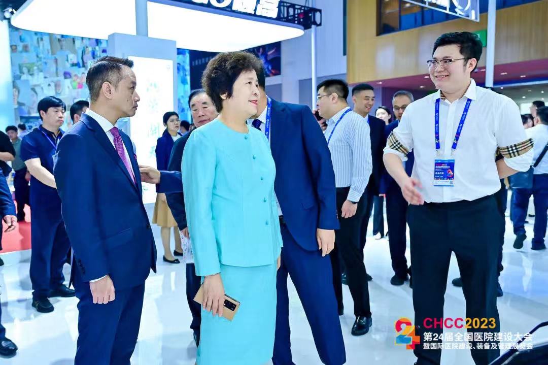 展會上,環(huán)亞集團派出了強大陣容,展示了近年來環(huán)亞集團在整體醫(yī)院建設(shè)、醫(yī)療智能化和信息化、新一代智聯(lián)手術(shù)部、智慧醫(yī)用物資管理SPD平臺、智慧醫(yī)院物流等方面取得的成果。集團下屬振邦智慧城市重點展示了“NHIS、智慧醫(yī)院、醫(yī)院信息平臺、急救急診一體化、5G新概念智慧病房”等五大核心信息化產(chǎn)品。展會期間,國藥集團黨委副書記,國藥勵展董事長楊柳,原衛(wèi)生部規(guī)財司司長、中國醫(yī)學(xué)裝備協(xié)會第六屆理事會理事長趙自林,中國醫(yī)學(xué)裝備協(xié)會醫(yī)院建筑與裝備分會副會長兼秘書長、筑醫(yī)臺總編輯、《中國醫(yī)學(xué)裝備》雜志社常務(wù)副社長李寶山等與會領(lǐng)導(dǎo)、嘉賓蒞臨環(huán)亞集團展區(qū)參觀指導(dǎo),對環(huán)亞集團的整體建設(shè)能力和振邦的“智能化+信息化”智慧醫(yī)療頂層設(shè)計、整體解決方案以及運維服務(wù)印象深刻,希望環(huán)亞集團再接再厲,為新時代美好醫(yī)院生態(tài)體系建設(shè)再立新功。眾多與會代表也對環(huán)亞集團5G新概念智慧病房、新一代智聯(lián)手術(shù)部等內(nèi)容表示了濃厚的興趣,紛紛索要相關(guān)資料,詢問有關(guān)技術(shù)細節(jié),并期望與集團展開進一步的合作。